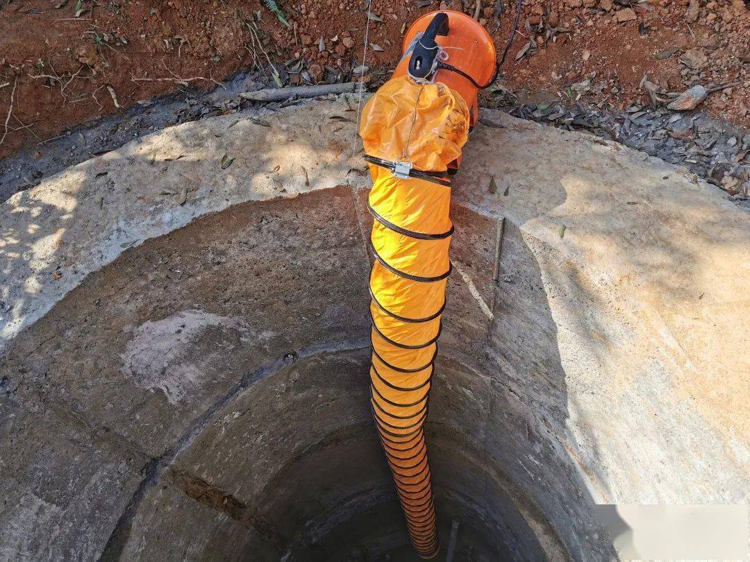 在這樣黑漆漆且封閉的環境中作業,堪比關小黑屋,不僅黑而且具有一定危險性。由于深基坑孔徑相對較小,通常情況下,基坑內空氣流動性差,某些土質可能會釋放出有毒氣體(一氧化碳、硫化氫等),或者爆破后產生的氣體尚未散盡,又或者由于二氧化碳氣體沉淀導致坑底氧氣含量降低,使得作業人員面臨中毒或窒息的風險。